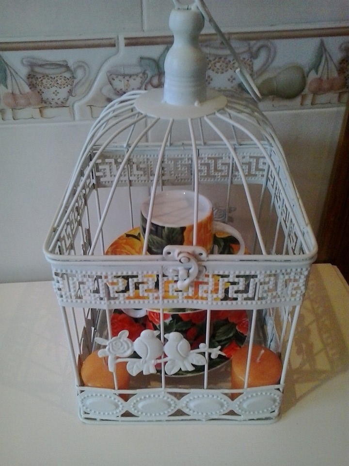 y el cajoncito que hizo mi abuelo que tambien pinte del mismo color de la mesita y decore con una lamina preciosa, ahora sirve de centro de mesa y alberga unas tacitas antiguas que pertenecieron al ajuar de mi madre ,